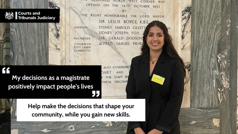 Having previously worked in HMCTS and having that in-court experience absolutely helped with not being so nervous entering a court, or the idea of sitting on the bench. In order to apply to be a magistrate you have to do two court observations; I would encourage everyone who applies to familiarise yourself with how a court operates, the language used, and the role of council and the judge.